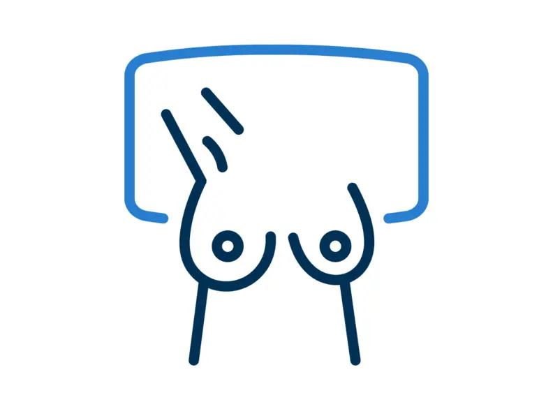Lägg ena handen bakom huvudet och undersök bröstet med den andra handen.